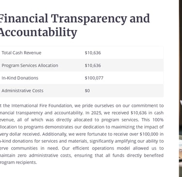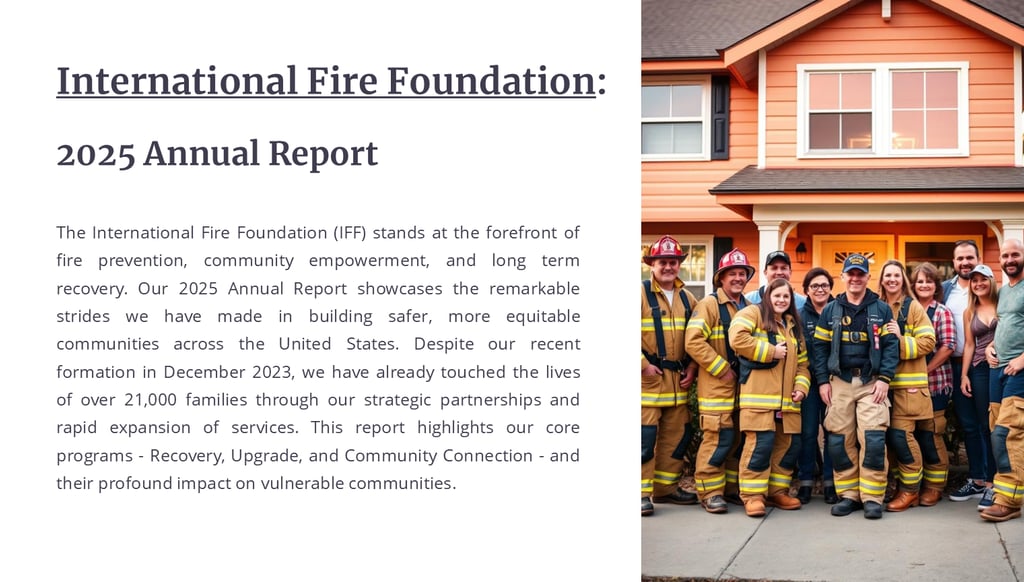 Overview of the International Fire Foundation annual impact, updated periodically for program transparency.